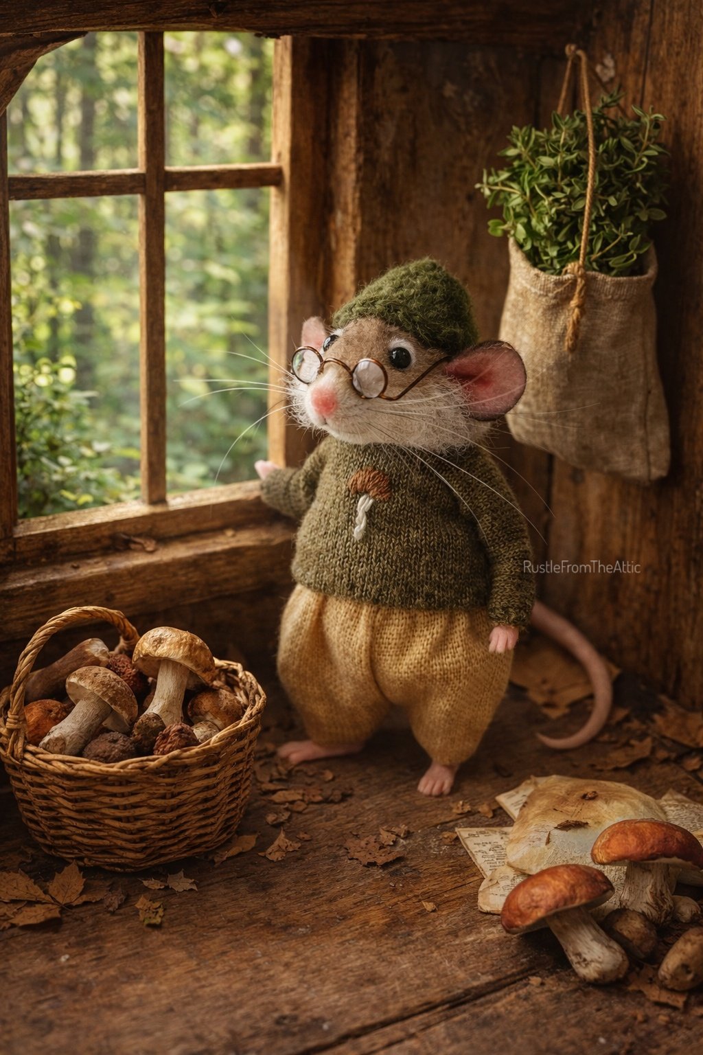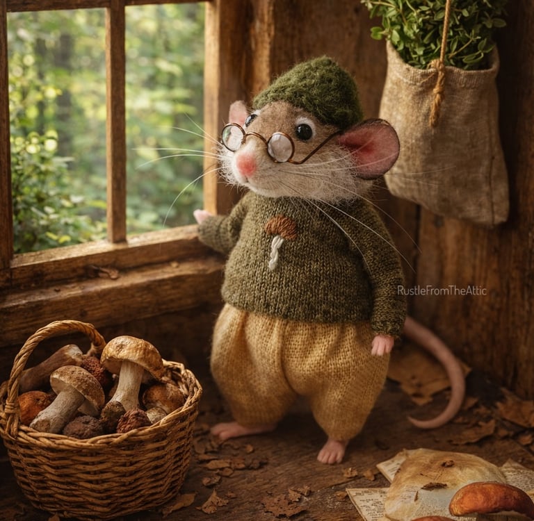 Basilio Bramblefoot lived in a small wooden house deep in the forest, where the trees whispered secrets and the light filtered in gently through his favorite window. Every morning, he stood there quietly, adjusting his tiny round glasses, watching the forest wake up.